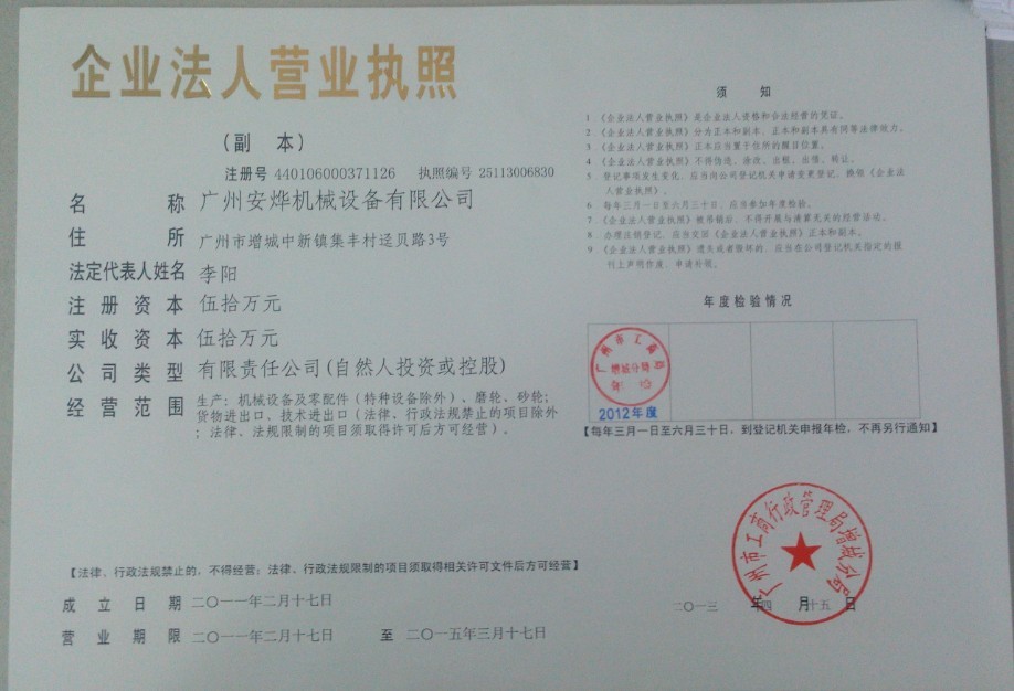 广州安烨网印机械有限公司 >> 资质证书